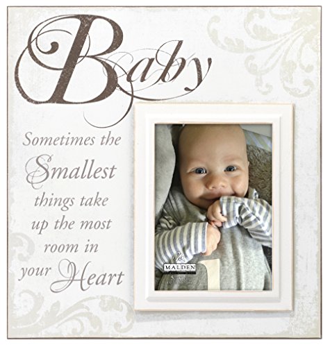 Malden International Designs Crème Silkscreened Wood "Baby" Picture Frame, 5x7, Off White