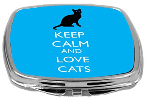 Rikki Knight Compact Mirror, Keep Calm and Love Cats Sky Blue