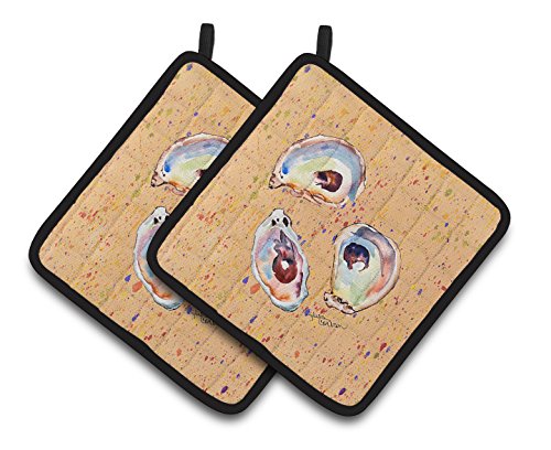 Caroline's Treasures Oyster Pair of Pot Holders 8466PTHD, 7.5HX7.5W, Multicolor