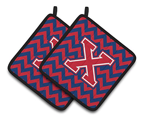 Caroline's Treasures Letter x Chevron Yale Blue & Crimson Pair of Pot Holders CJ1054-XPTHD, 7.5HX7.5W, Multicolor