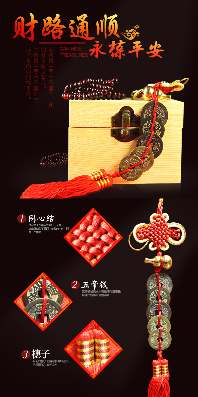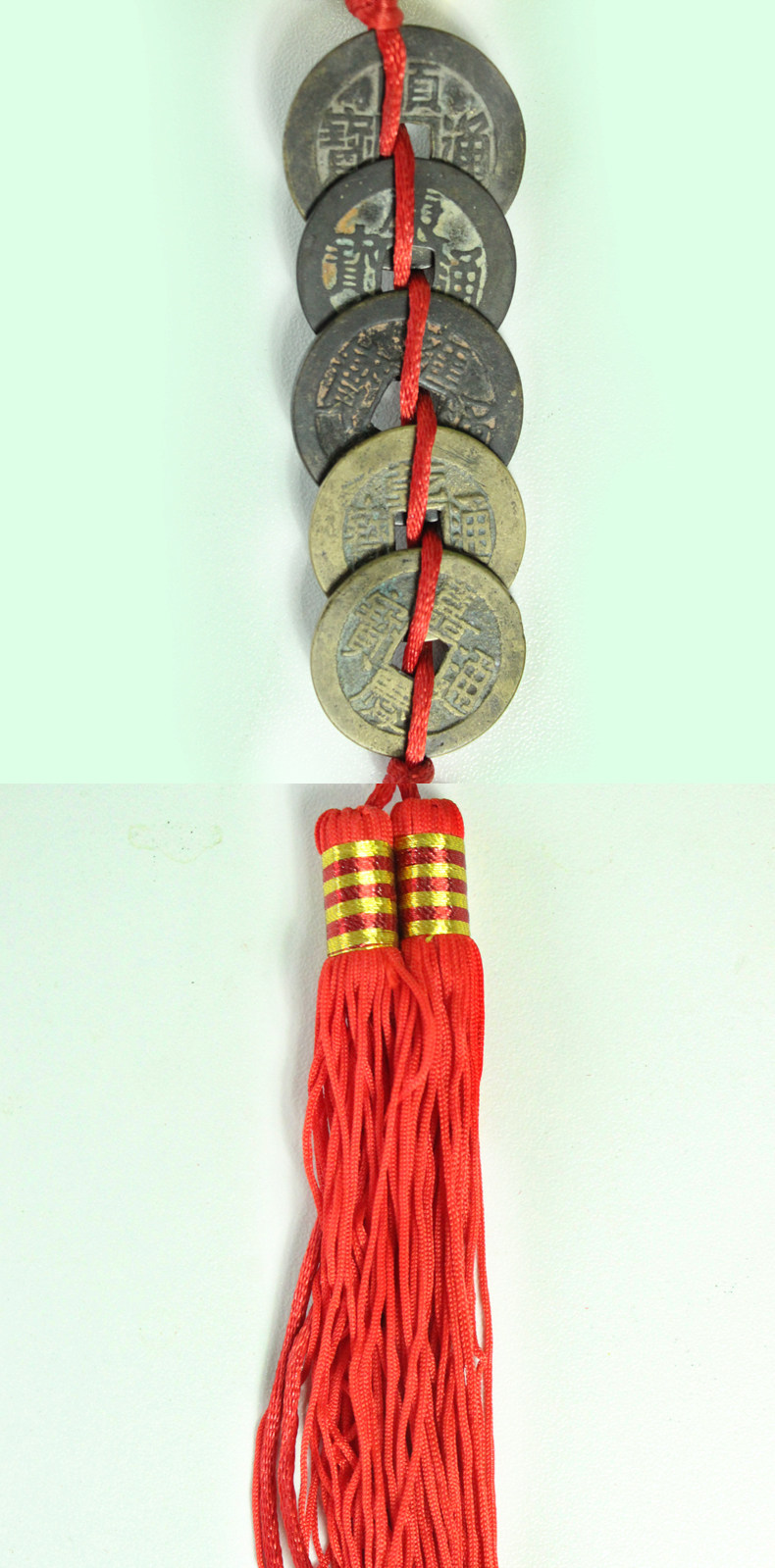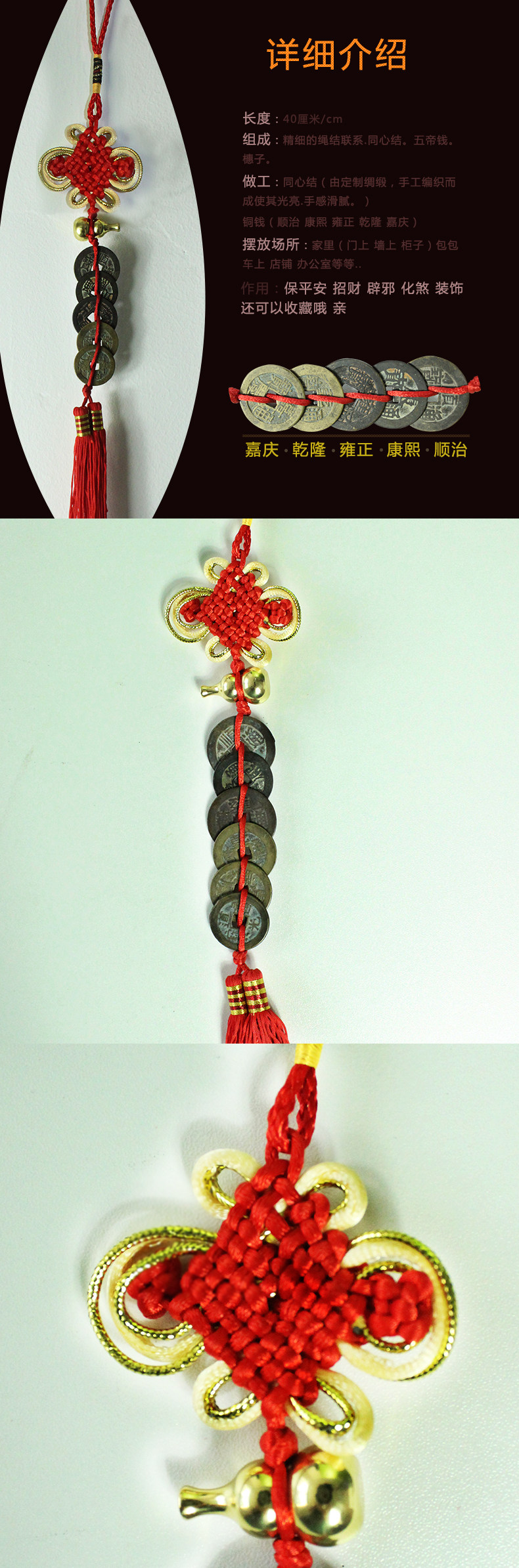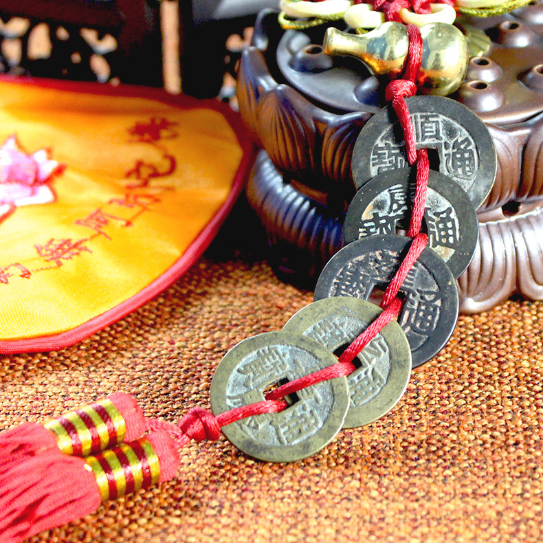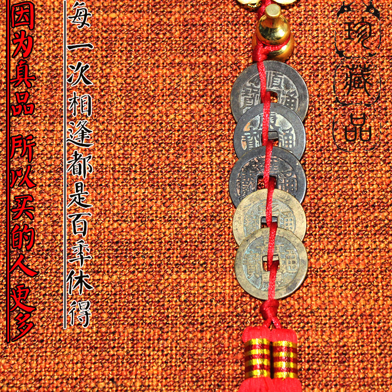 古币上的红穗,可以串成两种颜色,一种黄色的线(黄色是富贵的象征,),一种是红色的线(喜庆的象征)默认的发货就是红线,需要黄线请您备注!
