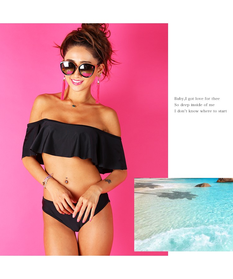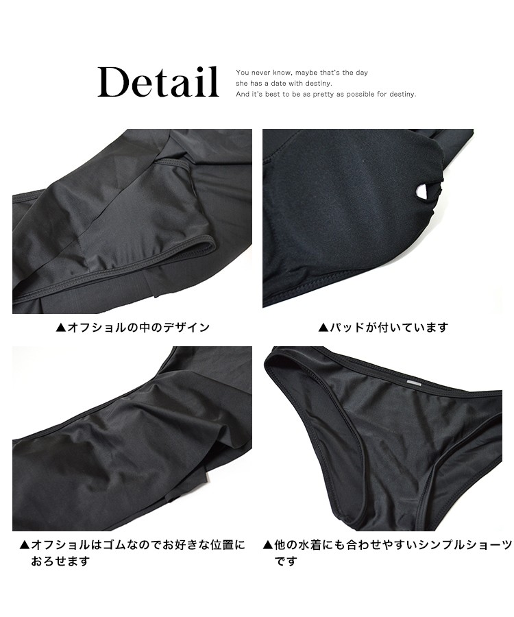 | 商品特徴 | LAVIA(ラヴィア)から新作のプチプラ水着が入荷しました。当店でも大人気なオフショル水着からワントーンのブラックカラーが販売開始!大人の色気を引き出してくれるブラックはビーチやプールでも注目間違いなしです。ヒラヒラなびくトップスの中はしっかりパットとパットポケット付きのバンドゥになっており着脱しやすいのも嬉しいポイントです。 【特徴】 今年も人気なオフショルビキニはひとつは持っておきたいアイテム!柄物が多い中でこちらはシンプルなワンカラーなので長く着ていただけるかと思います。そのまま頭からかぶり着用できるので着脱しやすく水中でホックが外れる心配もありません。 |