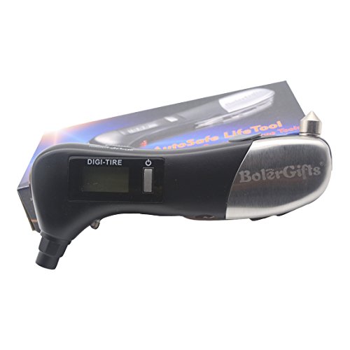 BolerGifts 9 in 1 150PSI Digital Tire Pressure Gauge with Safety Hammer Flashlight Red Warning Light and Seatbelt Cutter for Vehicles