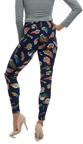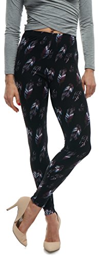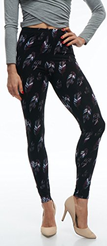 LMB Lush Moda Extra Soft Leggings with Designs- 503F New Feather on Black