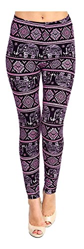 Lush Moda Extra Soft Leggings with Designs- Variety of Prints (Elephant Ornament Pink)