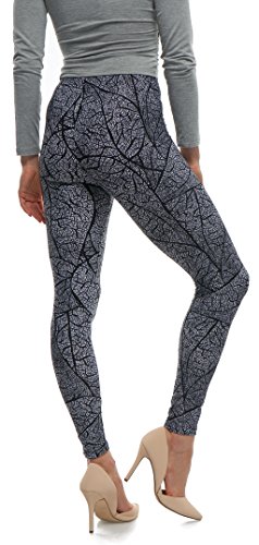 LMB Lush Moda Extra Soft Leggings with Designs- 501F Black White Leaves