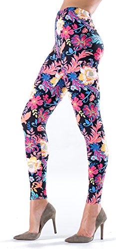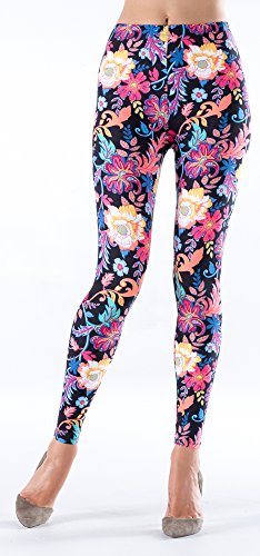 Lush Moda Extra Soft Leggings with Designs- Variety of Prints -Florals on Black 88F