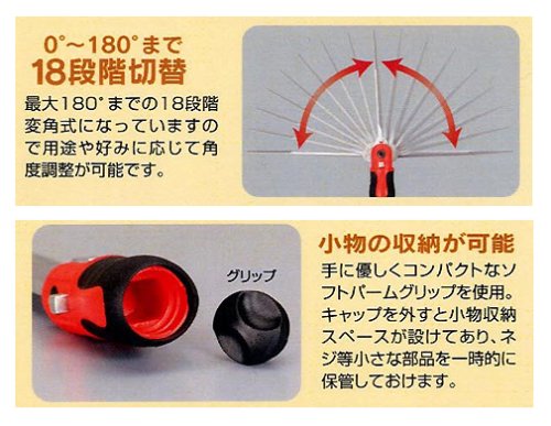 - Since it is 18 degree deformation angle type up to 180 degrees, angle can be adjusted according to the application and preference.