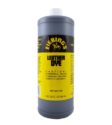 -. Binding : Office Product -. Brand : Fiebing -. Color : Tan -. EAN : 0700175602121 -. Feature : Fiebing's Permanent Leather Dye / For use on vegetable tanned or unfinished leather / Penetrates and dries uniformly / No Cracking or Peeling. PRODUCT IS FLAMMABLE. SHIPS VIA UPS / Can be mixed with other Fiebing's colors -. Label : Fiebing Company -. Manufacturer : Fiebing Company -. NumberOfItems : 1 -. PackageQuantity : 1 -. ProductGroup : Art and Craft Supply -. ProductTypeName : ART_SUPPLIES -. Publisher : Fiebing Company -. Size : 32 Ounces -. Studio : Fiebing Company -. Title : Fiebing's British Tan Leather Dye 32oz -. UPC : 700175602121