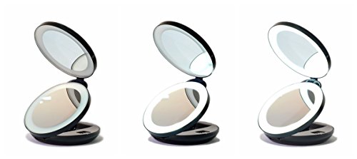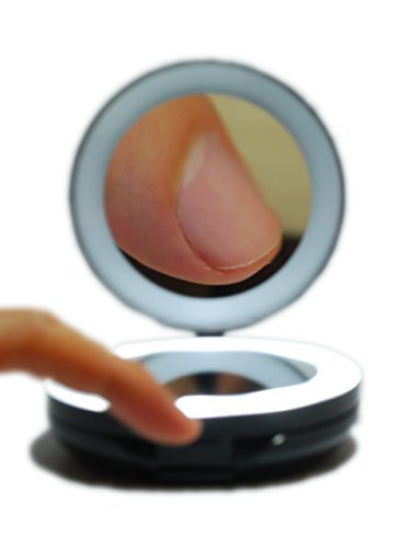 LED Lighted Travel Makeup Magnifying Mirror,Magnifies 10x and 1x, Luxury Double Side and Folding Pocket Vanity/Cosmetic Mirror (black)