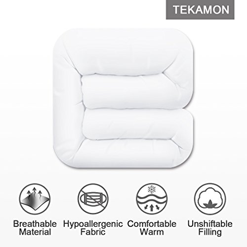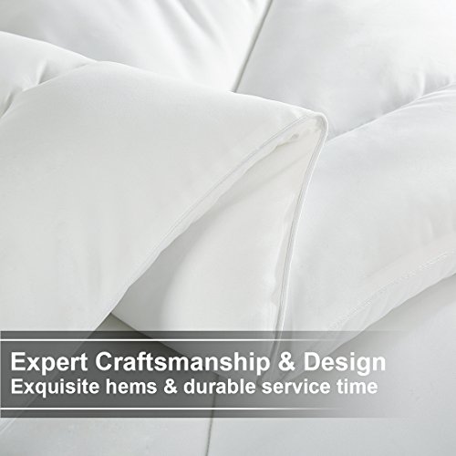 WHAT IS MICROFIBER? Microfiber, a high-density polyester with extremely fine fibers, making the comforter lightweight yet durable. These fibers give a pleasant feel against the skin as well as remaining breathable and cool, also its intense density makes duvet completely resistant to wrinkling and fading. In short, not only does this fiber keep you warm and cozy, it ensures long term use by retaining its shape and softness over time, and won't make you sneeze. Characteristics: ? ? ? Extreme Soft Fluffy ---Hypoallergenic and more breathable, without any worry for caking or horrible odor. Also, our duvet can not only remove the moisture but also prevent you from dust mites, mold, allergens, and mildew. ? ? ?Expert Craftsmanship Design---Durable hems, Precise Diamond Quilting Stitching, Simple but elegant Design, fits almost any type of decoration, adding more beauty to your bedroom. ? ? ?Extraordinary Energy Efficiency Less Burden --- Lightweight but Super ability of KEEPING WARM, provides you with healthy and sound sleep., and not too heavy to pressure you. ? ? ?Easy Care Convenience ---Machine washable (in COLD water) Tumble dry in low. No shrinkage or fade, the comforter will still look BRAND NEW. It will be able to function as duvet insert as well.The Sewn corner tabs secure duvet cover always in place. ? ? ? 100% Satisfaction Guarantee--- Legal label attached, which would offer you the Guarantee and Certification in law. Nothing to worry about the materials. Your satisfaction is always at TOP priority. Don't hesitate to take an order, as we provide you with a 60-day money back GUARANTEE. If not satisfied for any reason, just contact us! We are here to provide you a most satisfying solution!