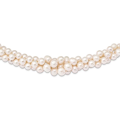 Solid 925 Sterling Silver RH 6-11mm White FWC Simulated Pearl 3-strand Grad Necklace 18" - with Secure Lobster Lock Clasp