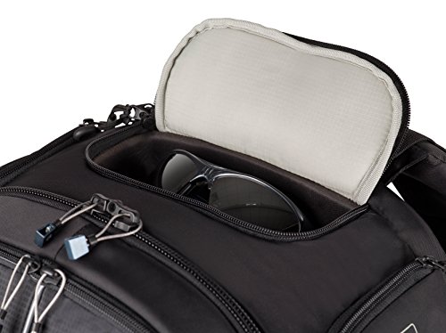 Die einrastenden Reissverschlussschieber sowohl am Kamera- als auch am Laptopfach konnen mit einem optional erhaltlichen Gepackschloss abgesichert werden.