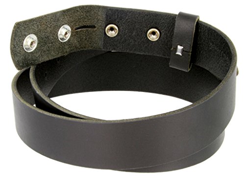 -. Binding : Apparel -. Brand : Belts.com -. Department : mens -. Feature : 100% Genuine Cowhide Leather / 1.5"(38mm) Wide Solid Piece of Leather-never break in half- just add your own buckle / Made with snaps for Interchanging buckles(NOT Included) / This belt's size is measured in inches, from the end of the strap where the buckle is attached, to the middle hole at the tip end. / Measure around where you wear the belt, with your pants on, and order the closest size. -. ProductGroup : Apparel -. ProductTypeName : ACCESSORY -. Title : 100% Solid Cowhide Leather Black Leather Belt Snap on Belt Strap 1.5" Wide