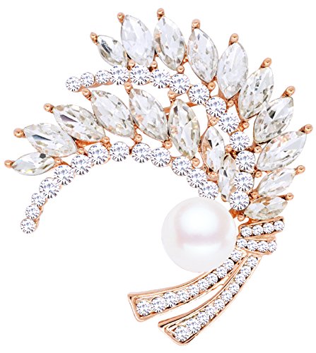 Brooch featuring a bunch of wheat design with clear crystal rhinestones and faux pearl