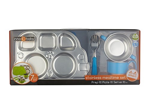 -. Title : Innobaby Din Din Smart Stainless Steel Dinnerware Gift Set (Divided Plate, Sectional Lid, Cup, Bowl and Utensil Set) for Babies, Toddlers and Kids. BPA free, Blue