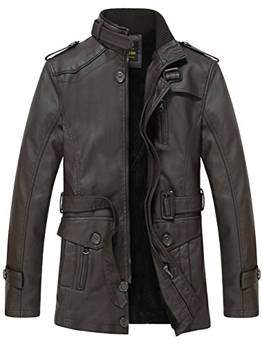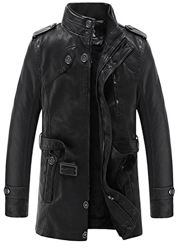 -. Title : (モダンミス)Mordenmiss トレンチコート メンズ レザー 本革調 ブルゾン 皮ジャケット ライダースジャケット
