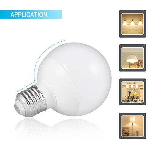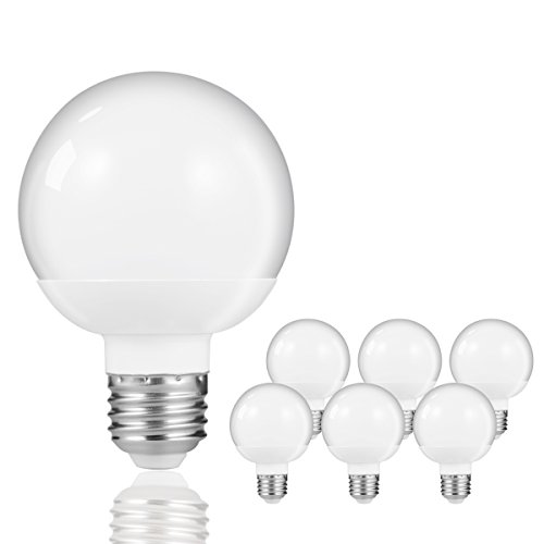 JandCase Vanity Light Bulbs, Small in Size But Big in Output, 8W (60W Incandescent Equivalent), 800Lm, LED Globe Bulbs, Soft White 3000K, E26 Base, 6 Pack