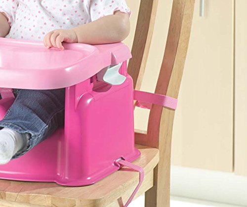 Feature : Contoured and comfortable for your child / Adjustable, dishwasher-safe tray with cup holder / Three-point harness for security / Attaches to most standard adult chairs / Back folds down for easy transport and storage
