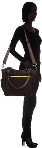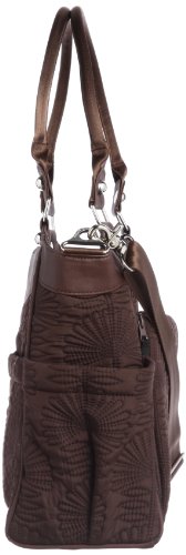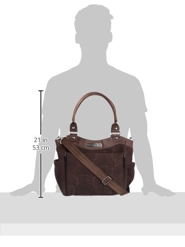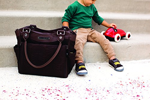 - Feature : Large interior space with 3 organizational pockets and 2 bottle pockets / 4 exterior side bottle pockets and 2 organizational pockets on the back / Versatile three ways to carry: shoulder with padded handles, cross-body with long strap or on stroller with valet stroller clips (sold separately) / Proudly PVC-free, sleekly embroidered polyester shell fabric exterior / PPB-monogrammed plastic wipes case