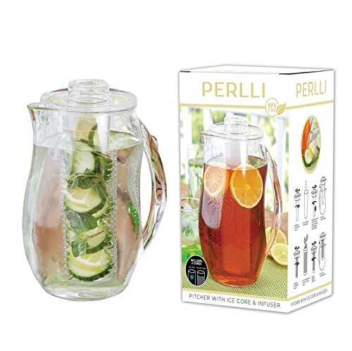 Enjoy fruit infused water, fruit flavored iced teas, cucumber water, punch and more with the Best Flavor Fruit Infusion Pitcher with Ice Core Rod by Perlli. The infuser tube is easy to fill, screws securely into place, and allows flavors from fruits, herbs and other fillings to naturally flavor water or any beverage. Create tasty & refreshing alternatives to soda and sugary juices. Use the ice core tube to conveniently keep beverages chilled, without having them diluted by melt water. The ice rod stays frozen longer than ice cubes, for superior cooling performance. The Best Flavor Fruit Infusion Pitcher with Ice Core Rod's 2.1-quart size is large enough to serve yourself and guests, and you can continually refill for 2-3 days without replacing fruit. Made from non-toxic and BPA-free acrylic, this fruit infuser pitcher is shatterproof and safe to use for anyone. Superior Convenience Smart design of the Best Flavor Fruit Infusion Pitcher with Ice Core Rod by Perlli delivers superior convenience: -Large, easy-to-grip handle -Quick hand wash, or dishwasher safe in top rack -Secure lid -Sturdy and compact design Kitchen fashionista? This fruit infuser pitcher has contemporary, sleek styling that looks great! Perlli's Best Flavor Fruit Infusion Pitcher with Ice Core Rod makes a lovely kitchen & home gift for housewarming parties, bridal registry, Mother's Day, birthdays, and more. Or treat yourself to the ultimate fruit flavor infusing pitcher that allows you to create lemon water, peach iced tea, cucumber water, sangria, and dozens of other delicious beverages. A-to-z Guarantee & Free 2-Day Shipping Your purchase is protected by Amazon's A-to-z Guarantee, click now to enjoy your new favorite chilled beverage serving pitcher. Amazon Prime members receive 2-day shipping ABSOLUTELY FREE!Feature