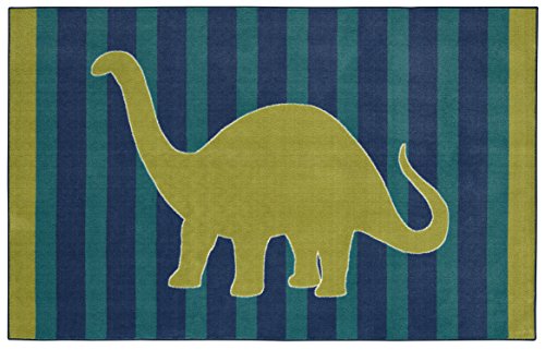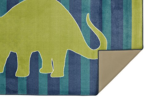 Not all dinosaurs are scary! Meet the Friendly Dinosaur from Mohawk Home. Cool tones of teal, deep blue and zesty key lime add a refreshing splash of color to your child’s space. Part of our Kids Interactive collection, this one was created with our premium Wear-Dated nylon fiber for a soft touch and dependable durability. The fiber utilized in the design of this product has been performance-tested to meet strict standards of durability and stain resistance, for a quality you can trust!Printed on the same machines that manufacture one of the world’s leading brands of printed carpet, this rug is extremely durable and vibrant. This technology allows the use of multiple colors to create a rug that is wonderfully designed and applicable to any room in your home. With this cool casual style and kid-approved themed print, this rug's pile height is 6/16 in high. Remember to keep the pile and fabrics in tip top shape. Area rugs should be spot cleaned with a solution of mild detergent and water or cleaned professionally. Regular vacuuming helps rugs remain attractive and serviceable. Only the best quality materials will do. This rug is printed with a cut pile on Wear Dated 100% nylon, with action backing. Made in USA.Feature