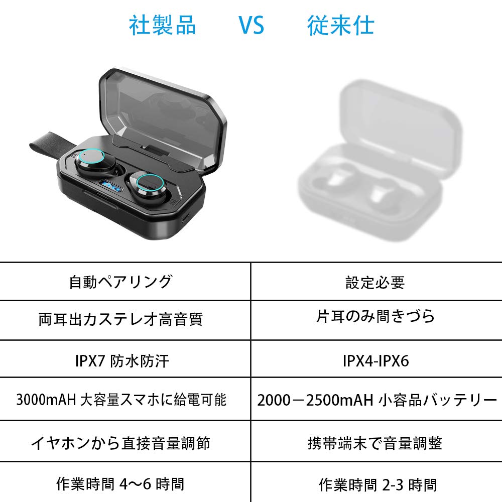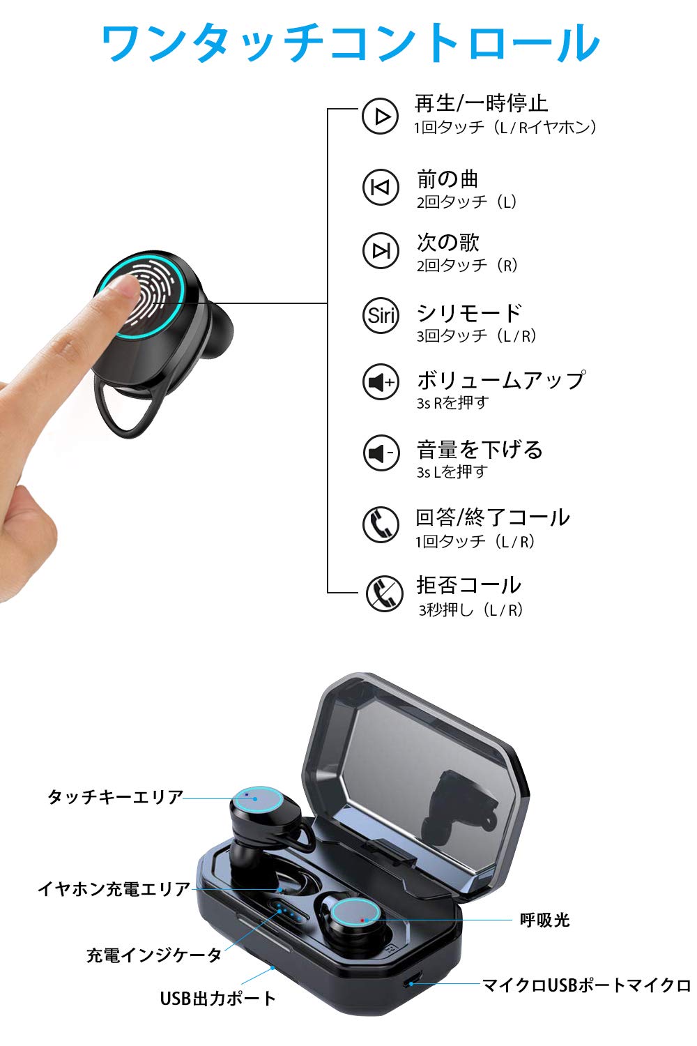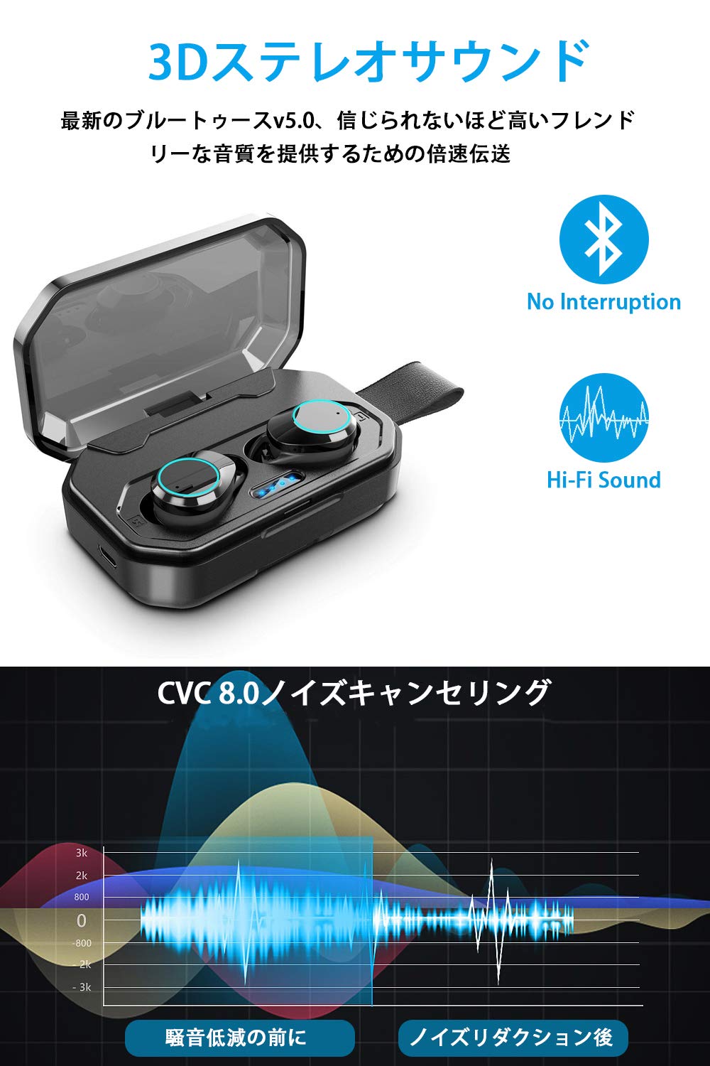 【真・Bluetooth 5.0イヤホン&Hi-Fi高音質】最先端のBluetooth 5.0+EDRが搭載されているため、安定したBluetooth接続性能,データレートが2Mbpsと高速化、通信可能エリアが4倍に拡大になります。高速かつ途切れのないペアリング接続を体験できます。ブロードキャスト通信容量が8倍に増やします。まさに高速・安定かつ途切れのない接続体験が実感できるBluetoothイヤホンです。 尚、先端技術のアンテナが搭載されているなので、信号が強くなり、IOSとAndroid両方とも対応可能です。二つのモノラルの音を融合して、真の無線立体音声体験を頂きに近づきます。更に、CVC8.0ノイズキャンセリング機能により外からのノイズを削減し、安定性&バランス感両立する高音質を楽しみいただけます。またマイク内蔵付きで、クリアな通話ができますし、ステレオ音楽にもお楽しみいただけます。