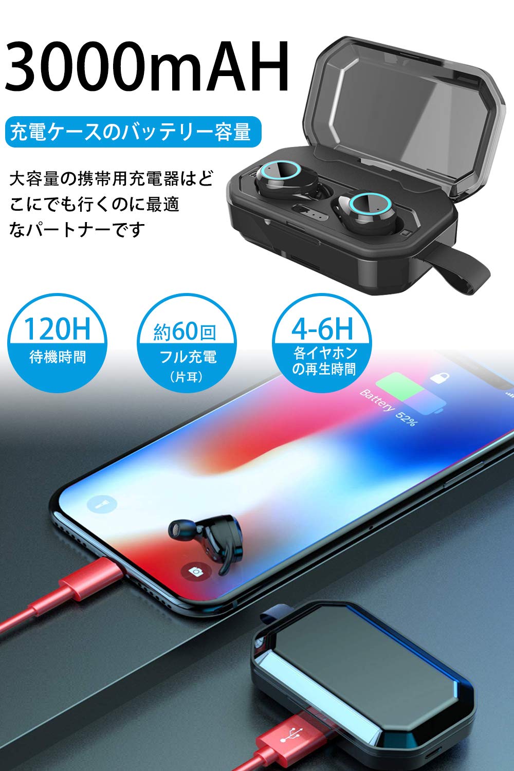 【3000mAh超大容量充電ケース付&モバイルバッテリー機能】Bluetooth イヤホンは磁石式でカチッと充電できる収納ケース付き、イヤホンの紛失防止だけではなく42回繰り返し充電も出来、3000mAh大容量イヤホンケースで待機時間が630hまで伸べます。連続再生時間が最大20時間まで実現します、片耳の音楽再生/連続通話時間約4~6時間。モバイルバッテリーとしてスマホやIQOSなどに充電も実現し、お出かけや旅行中の電池切れ心配も少なくなります。