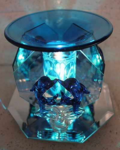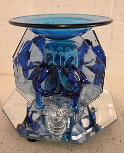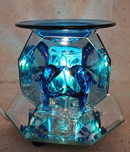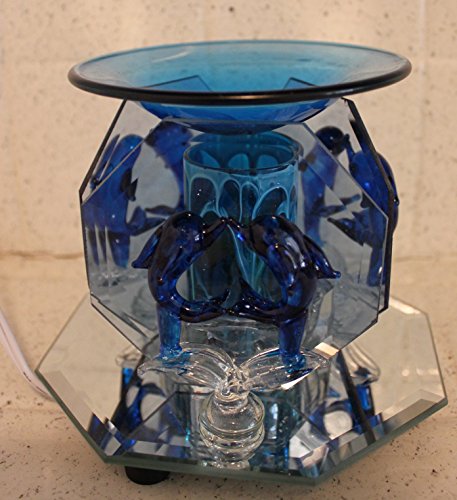 ELECTRIC OIL WARMER TART BURNER 2 KISSING DOLPHINS, 3 SIDED MIRROR, DARK BLUE
