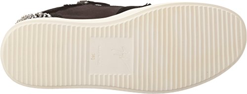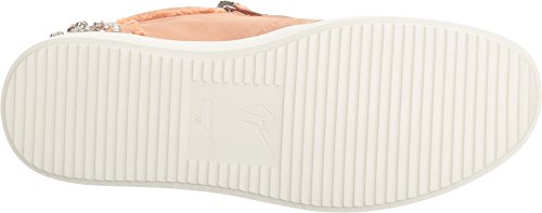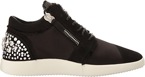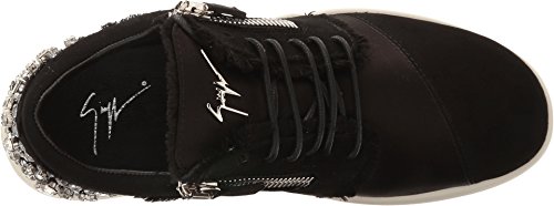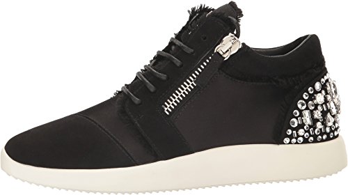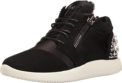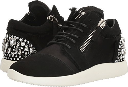 Binding : Apparel Product Description Ramp up any casual look with Giuseppe Zanotti™. Leather and durable textile upper. Lace up closure connected through hidden eyelets. Pull-on design. Dual side zipper closure for easy on and off. Round toe silhouette. Exquisite sparkling jeweled detail at the back of the heel. Leather lining. Lightly padded leather insole with embossed logo. Stacked rubber sole. Made in Italy. This item may ship with an attached security tag. Merchandise returned without the original security tag attached or a damaged tag may not qualify for a refund. Measurements: Weight: 11 oz Product measurements were taken using size 39 (US Women's 9), width M. Please note that measurements may vary by size. 0