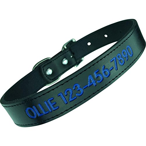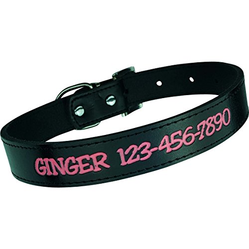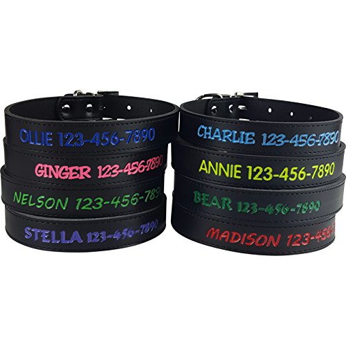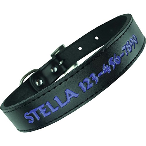 Studio : Custom Catch Publisher : Custom Catch Binding : Misc. Product Description Sturdy personalized dog collar with your dog's name and/or phone number engraved directly into the genuine leather. These personalized dog collars are both fashionable and practical with a variety of text colors and styles on a small size black leather collar.
