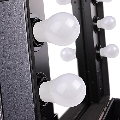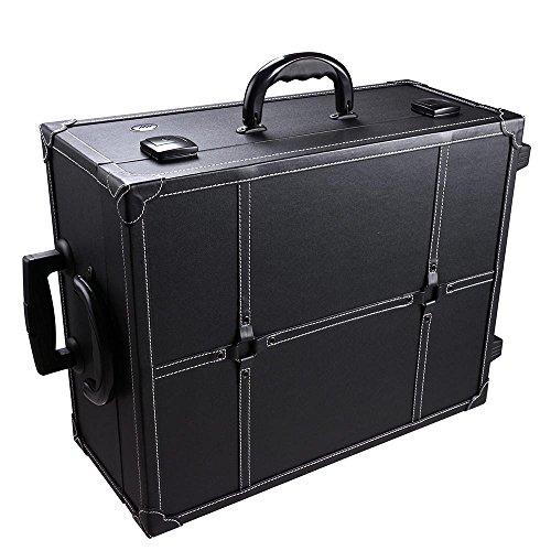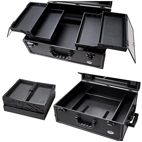 AW Black Rolling Studio Makeup Artist PVC Cosmetic 15x8x19' Case w/ Light Mirror Portable Train Table
