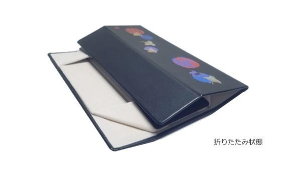 | 和柄デザインがシックでオシャレな大人向けメガネケースです。折りたためるので持ち運びにも便利です。ケースをすっきり見せるマグネット開閉式。 |