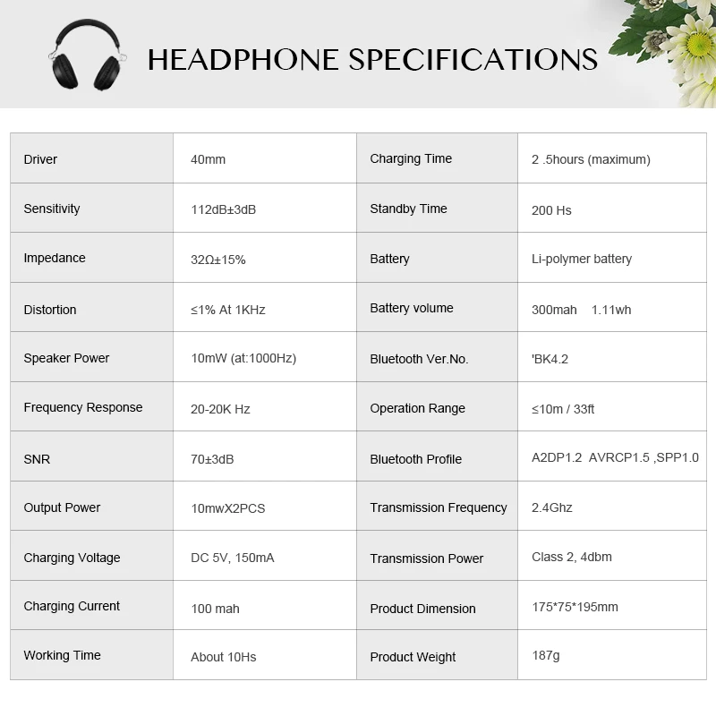 Feature 2:Bluetooth 4.2 Wireless Headphones