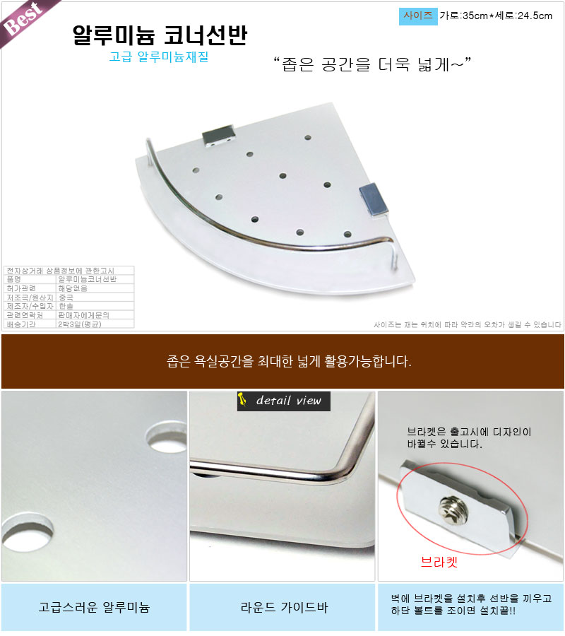 - 품명 및 모델명알루미늄코너선반