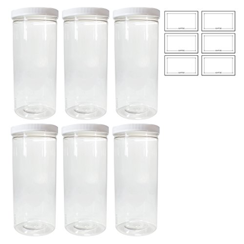Clear 80 oz PET Plastic (BPA Free) Extra Large Refillable Jar - (6 pack) + Labels