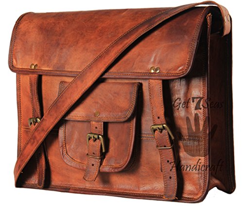 -. Title : RK 15" vintage leather messenger shoulder bag for men and women