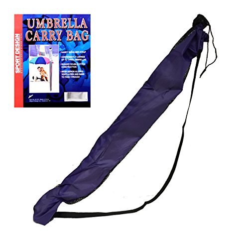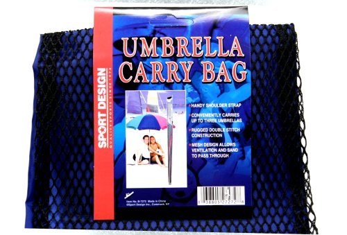 -. Binding : Tools & Home Improvement -. Brand : Sport Design -. ClothingSize : X-Large -. Color : blue, black -. EAN : 0038805272728 -. Feature : The easiest way to carry up to three beach umbrellas / Red double stitch construction. Nylon on one side, strong black mesh fabric on the other / Handy shoulder strap. / Mesh design allows ventilation and sand to pass through / Measures 46-in long -. IsAutographed : 0 -. IsMemorabilia : 0 -. Label : Sport Design -. Manufacturer : Sport Design -. Model : B-7272 -. MPN : B-7272 -. PartNumber : B-7272 -. ProductGroup : Home Improvement -. ProductTypeName : BUILDING_MATERIAL -. Publisher : Sport Design -. Size : X-Large -. Studio : Sport Design -. Title : Deluxe Beach Umbrella Shoulder Carry Bag -. UPC : 038805272728