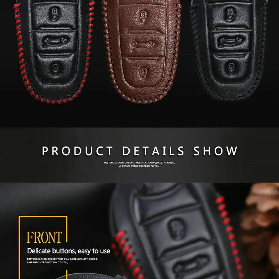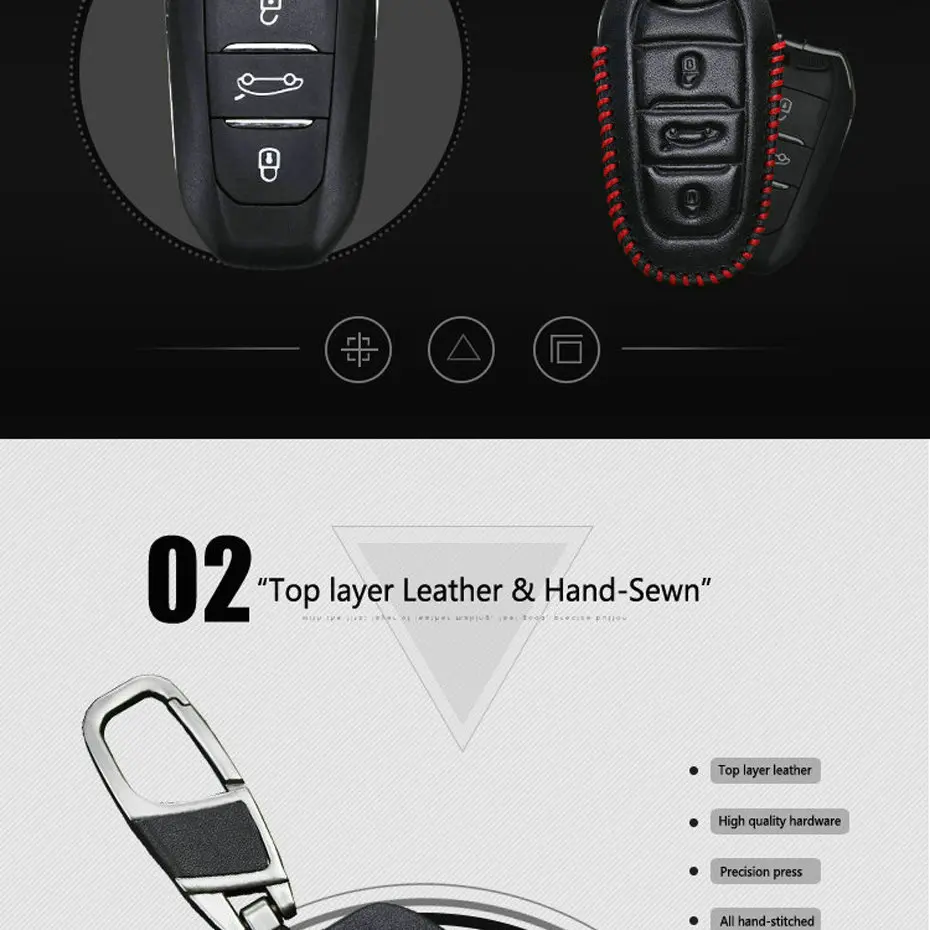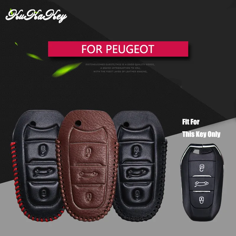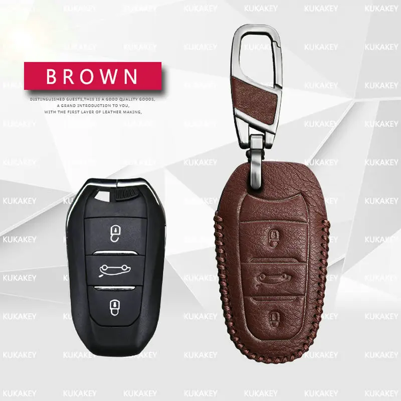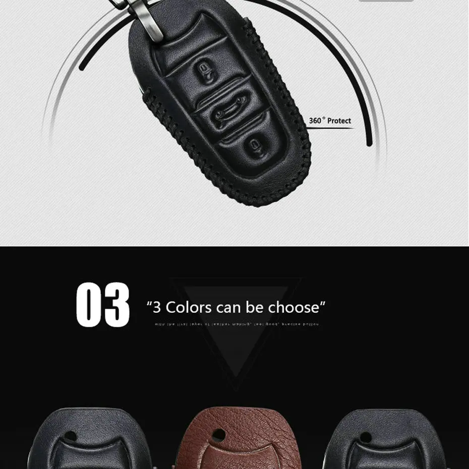 Item Feature:Genuine Leather Auto Emblems Key Fob Cover For Peugeot