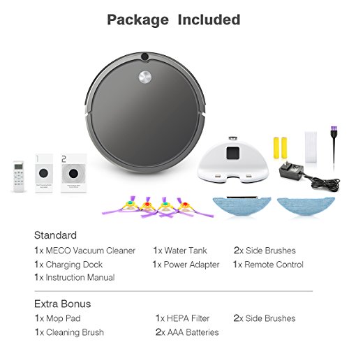★ Der Meco HXS-G1 Roboterstaubsauger Tierhaar Terminator saugt alle Tierhaare problemlos und ohne Ruckstande auf. Mt intigrierter Wischfunktion um auch den kleinsten Partikeln lebewohl zu sagen. Um den Wischtank nachzufullen benotigen sie nur 5 Sekunden und er ist wieder einsatzbereit.