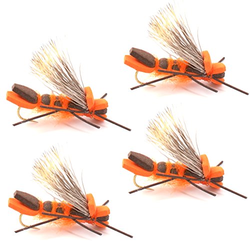 -. Binding : Misc. -. Brand : The Fly Fishing Place -. EAN : 0767872625150 -. Feature : Great strike inducing grasshopper or stonefly adult fly fishing fly pattern / Perfect for bank-popping in the heat of summer, or for searching pocket water anytime / Excellent trout, bass or panfish flies / Set of 4 Flies Hook Size 8 / Perfect for indicator fishing with a beaded nymph dropper -. IsAutographed : 0 -. IsMemorabilia : 0 -. Label : The Fly Fishing Place -. Manufacturer : The Fly Fishing Place -. PackageQuantity : 4 -. ProductGroup : Sports -. ProductTypeName : SPORTING_GOODS -. Publisher : The Fly Fishing Place -. Studio : The Fly Fishing Place -. Title : Godzilla Hopper Fly Fishing Flies - Orange High Visibility Grasshopper or Stonefly Dry Fly - 4 Flies Hook Size 8 -. UPC : 767872625150