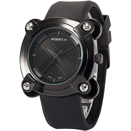 -. Title : [エージェント エックス]Agent X 腕時計 日本製クォーツ ブラック シリコーンバンド メンズ