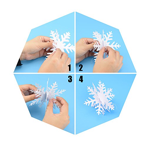 - 3D snowflake design: each snowflake is composed of 3 layers of snowflakes, snow is tiled when you receiving, you need to fold up the snowflakes along the suture, easy but should be careful