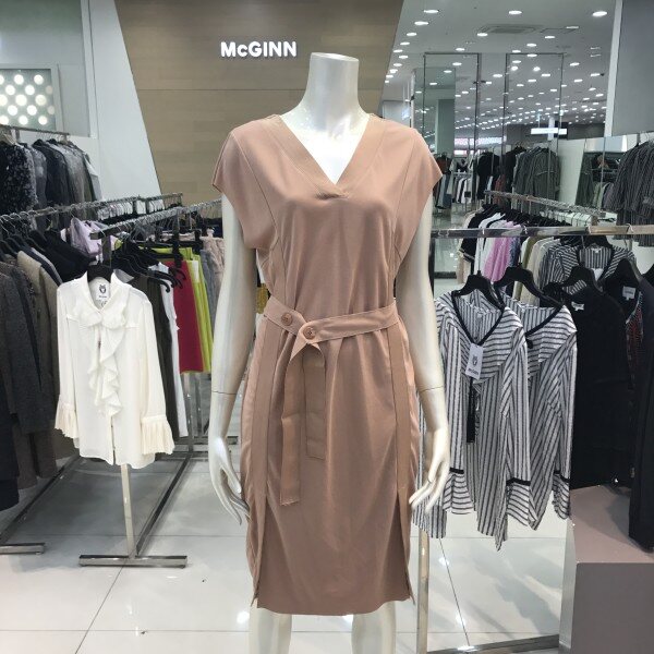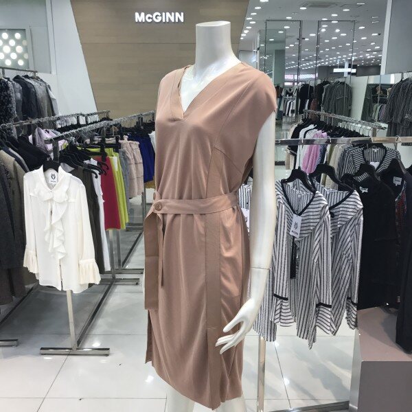 McGINN, 플라워 주름 디테일로 러블리한 감성을 자아내는 민소매 원피스입니다