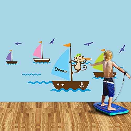 -. Title : Wallpark Sailboat Seagull Cute Monkey Removable Wall Sticker Decal, Children Kids Baby Home Room Nursery DIY Decorative Adhesive Art Wall Mural