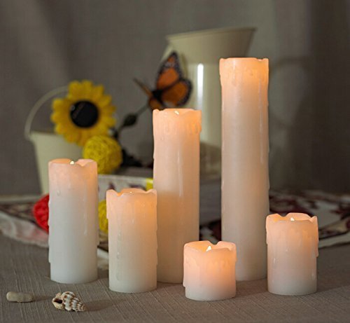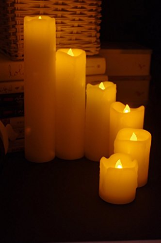 Set of 6 variable sized real wax Flickering Flameless LED Candles, making them ideal for Weddings, Birthdays, Christmas and all celebratory occasions