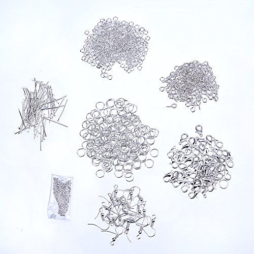 eBoot 7 Style 895 Pieces Jewelry Findings Starter Kit with Clear Box, Silver