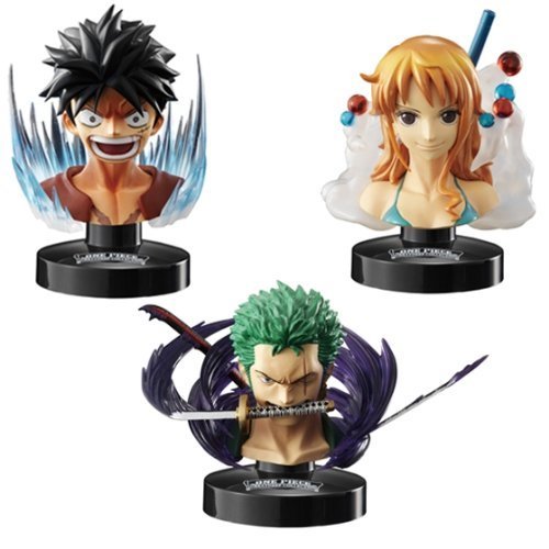 [Line Up] Luffy: H 92 mm, Zoro: H 85 mm, Nami: H 98 mm Base: 53 mm in diameter.