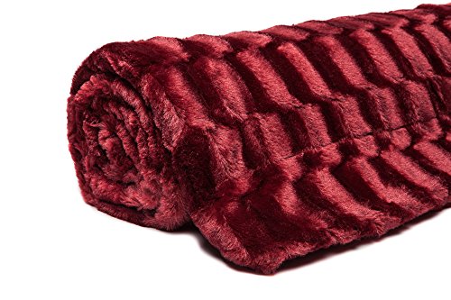 Chanasya Super Soft Fuzzy Fur Elegant Faux Fur Rectangular Embossed Pattern With Fluffy Plush Sherpa Cozy Warm Maroon Red Throw Blanket (50" x 65") - Burgundy
