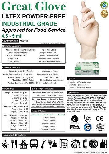 GREAT GLOVE 20000-XS-INNER Latex Industrial Grade Glove, X-Small, Natural